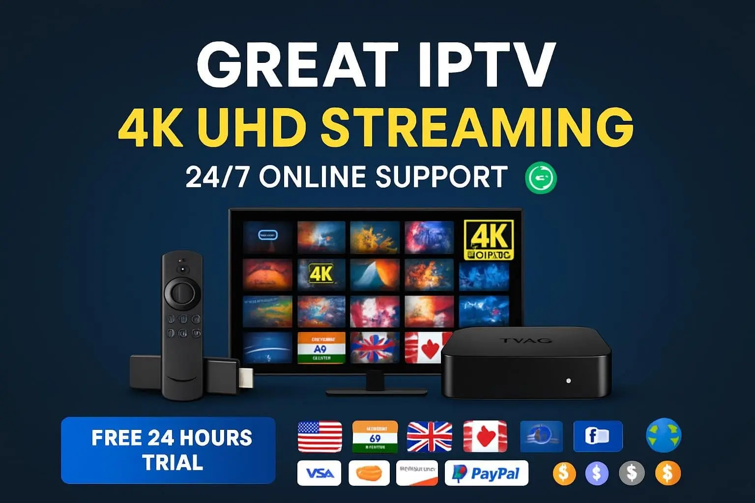 Get uninterrupted 4K IPTV streaming with automatic updates, free channel additions, and premium support for 24 months.